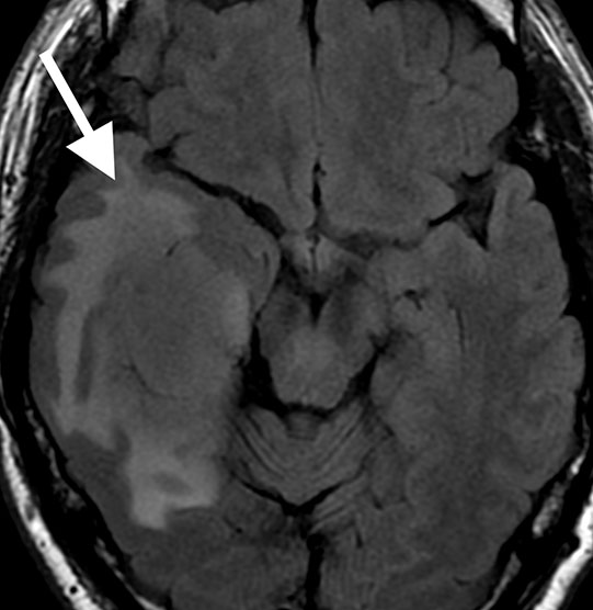 右側頭葉に直径約6cmの脳腫瘍を認めました。