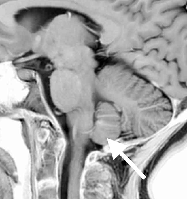小脳扁桃という部分が若干下に下がっている所見を認めました。